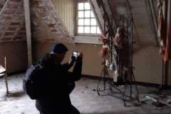 D’autres urbexeurs ont marqué leur passage (à la craie) sur des murs et ont mis en scène quelques pièces du lieu.